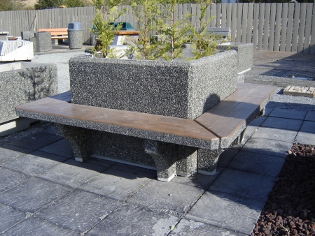Seating planks made of Coloured Concrete with Simulated Woodgrain finish.