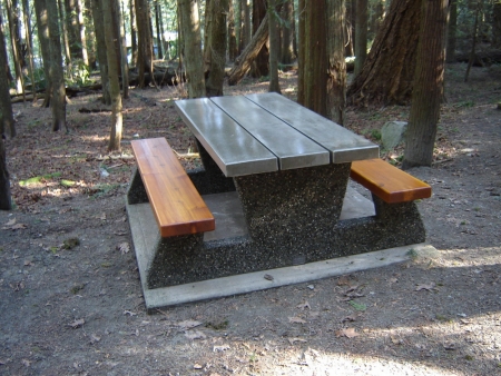 | Precast Coloured Top & Cedar Seats Coloured Concrete Woodgrain Finish |